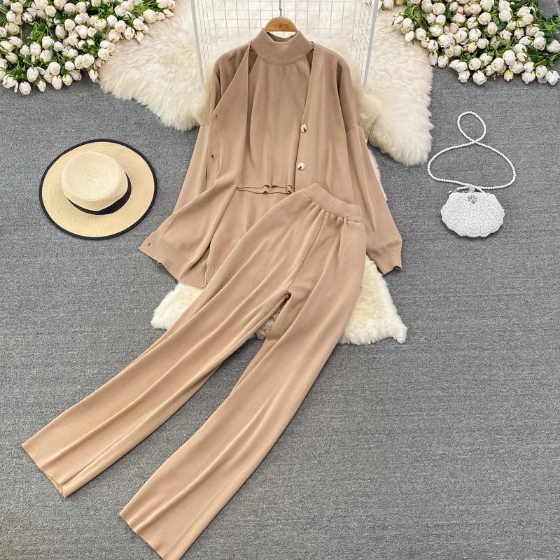 Knitted Set 3 Piece Sweater Pants Women Knit 3 Piece Tracksuit Women Tracksuits 3 Aliexpress
