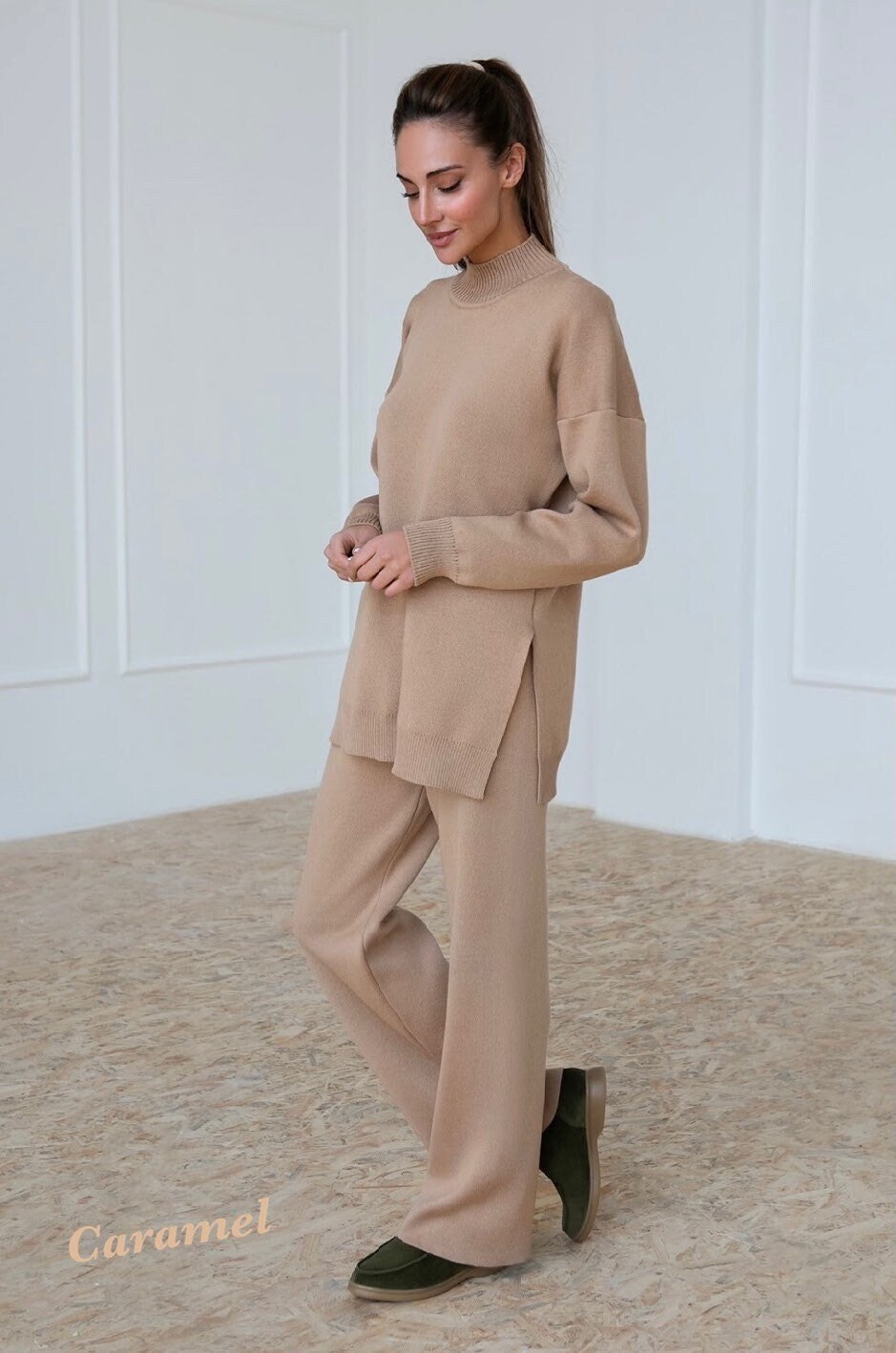 Women S Wool Pants Suit Knitted Lounge 2pc Setwarm Etsy